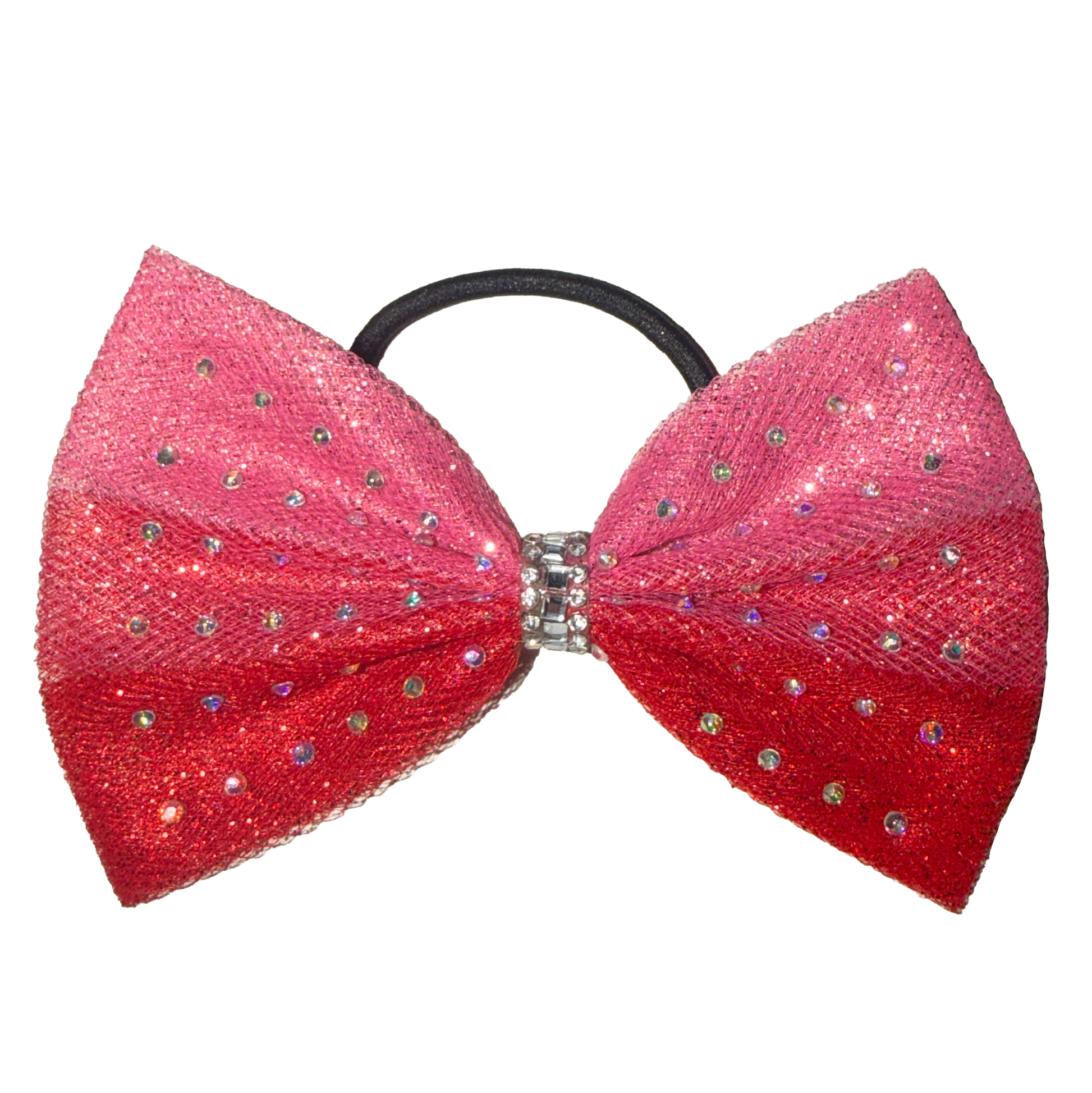 Made to Match Ribbons of love leotard: Glitter ombre from pink to red and adorned with rows of crystals.