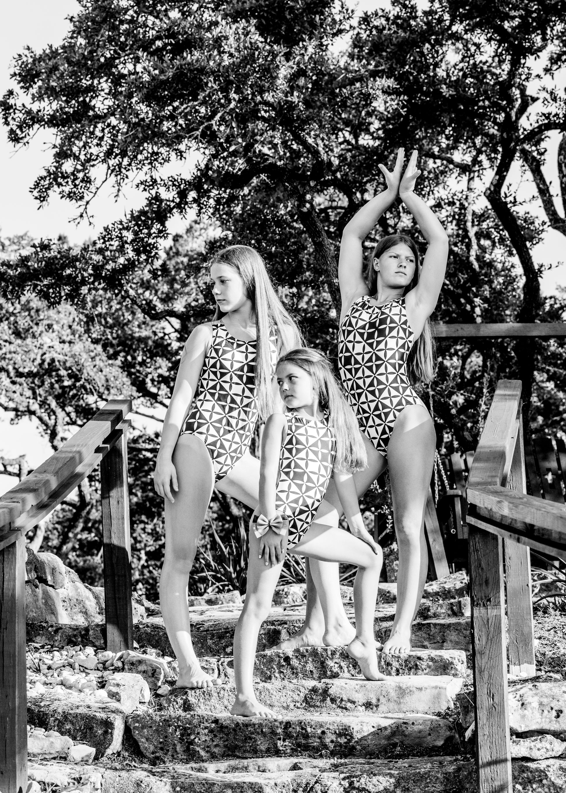 This sleek and striking racerback leotard is the perfect blend of bold and modern design. The front features a captivating black and white geometric pattern, creating a mesmerizing visual effect that exudes confidence and style. The back is a vibrant, electric blue, adding a pop of color that energizes the look. The racerback cut ensures maximum flexibility and comfort, making this leotard ideal for gymnasts who love to stand out while staying effortlessly chic.