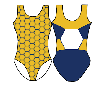 Honeycomb – Show your school spirit in style with this bold, college-inspired leotard. The front features an all-over golden honeycomb pattern that radiates energy and team pride, while the deep navy accents create a striking contrast. The back steals the show with a unique hexagon-shaped open cut-out, perfectly tying in the honeycomb theme and adding a fun, breathable twist. A perfect pick for athletes who want to stand out while repping their colors!