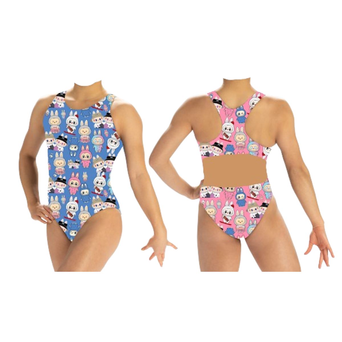 Meet your new favorite leotard! 🖤 Party Labubu brings your beloved critter to life in a collage of labubus of various different styles on a blue and pink background with a comfy racerback fit. Available now for presale with delivery expected by mid-December—snag yours before they’re gone!